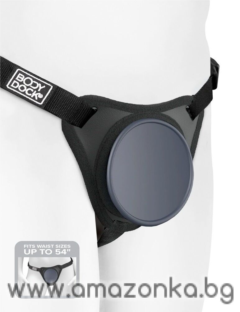 Простата система за закачане се основава на анатомично извитата докинг плоча, върху която може да се прикрепи всеки вибратор или вибратор с вендуза (не са включени). Вибраторът/вибраторът се държи перфектно в позиция (натискане и игра). Подплатената докинг плоча разпределя натиска равномерно върху областта на таза, така че да се избегне неприятен натиск. В тази версия Elite, задната каишка е меко подплатена, а докинг плочата е изработена от силикон за още по-голям комфорт. Всичко се адаптира идеално към анатомията и движенията. Здравите широки презрамки се регулират с пластмасови плъзгачи за здраво и удобно прилягане.