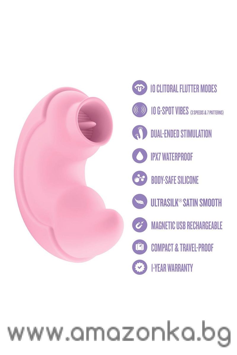 Revel in pleasure and style with Play With Me Pout & Play. Disguised as a sleek beauty case complete with a built-in mirror, this chic and flirty dual-ended vibrator is designed for moments of pure indulgence wherever you are. One end features a precision tip that’s perfect for G-spot stimulation, while the other offers tongue-inspired fluttering sensations for clitoral play, each with 10 customizable settings to suit your every desire. Crafted from premium body-safe silicone and finished with our signature UltraSilk® touch, Pout & Play glides effortlessly against the skin for a smooth, sensual experience. Its IPX7 waterproof design allows for playful possibilities beyond the bedroom, and the USB rechargeable feature ensures it’s always ready when you are. Discreet, portable, and irresistibly elegant, Pout & Play is essential for pleasure that fits seamlessly into your lifestyle.