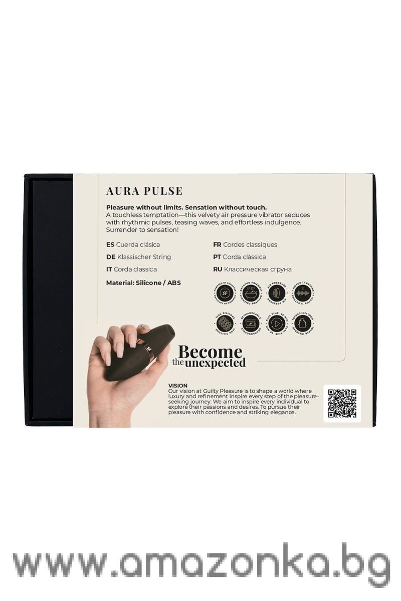 Aura Pulse е първокласен стимулатор с въздушни импулси, създаден в партньорство със Satisfyer, съчетаващ усъвършенствана технология за вълни под налягане с луксозен дизайн. Проектиран за високоефективна, безконтактна стимулация, той предлага 11 нива на интензивност, позволяващи на потребителите да персонализират преживяването си от нежно до мощно.