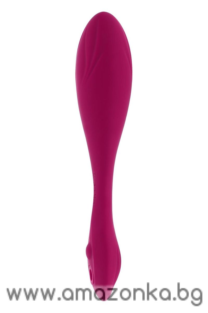 Заемете поза „череша“ с този гъвкав, позиционируем вибратор, който остава точно както го огънете. Мощни вибрации се излъчват едновременно от всяка текстурирана глава, за да ви донесат двойно удоволствие, независимо от избраната извивка. Единият край се издува до луковична обиколка със заострен връх, докато по-малкият край е с овална форма и издутина в центъра. Споделете преживяването си или го направете свободни ръце с дистанционното управление с обхват от 9 метра.