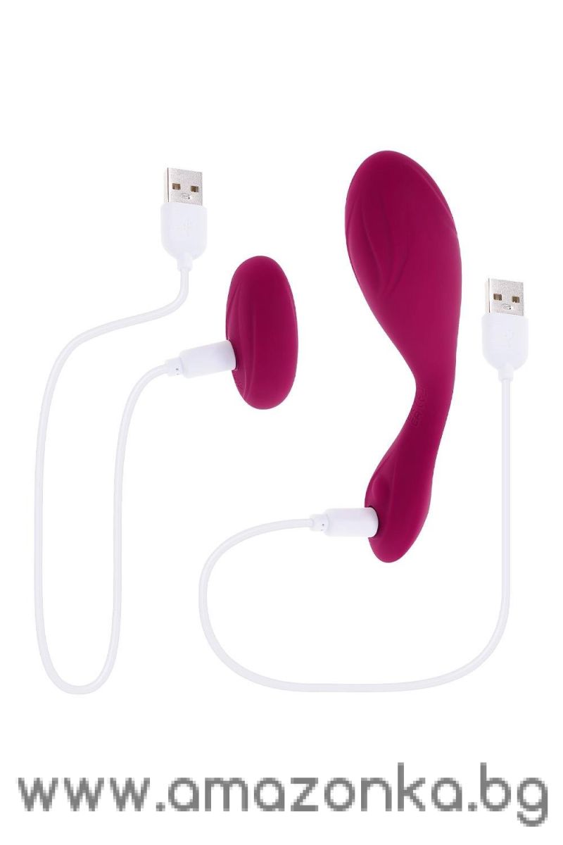 10 скорости и режима на вибрация 2 мотора, работещи едновременно Дължина на поставяне: 12,7 см Диаметър: 3,2 см Изработена от силикон без фталати и латекс USB магнитна презареждаща се играчка и дистанционно, кабел включен Височина: 16,1 см Дълбочина: 1,8 см Ширина: 3,2 см Дистанционно: Височина: 5,9 см Дълбочина: 2 см Ширина: 3,4 см Обхват: 9,1 м Водоустойчива