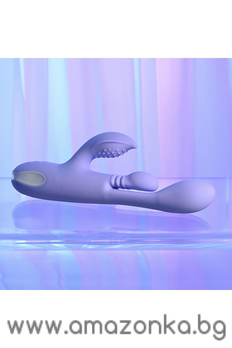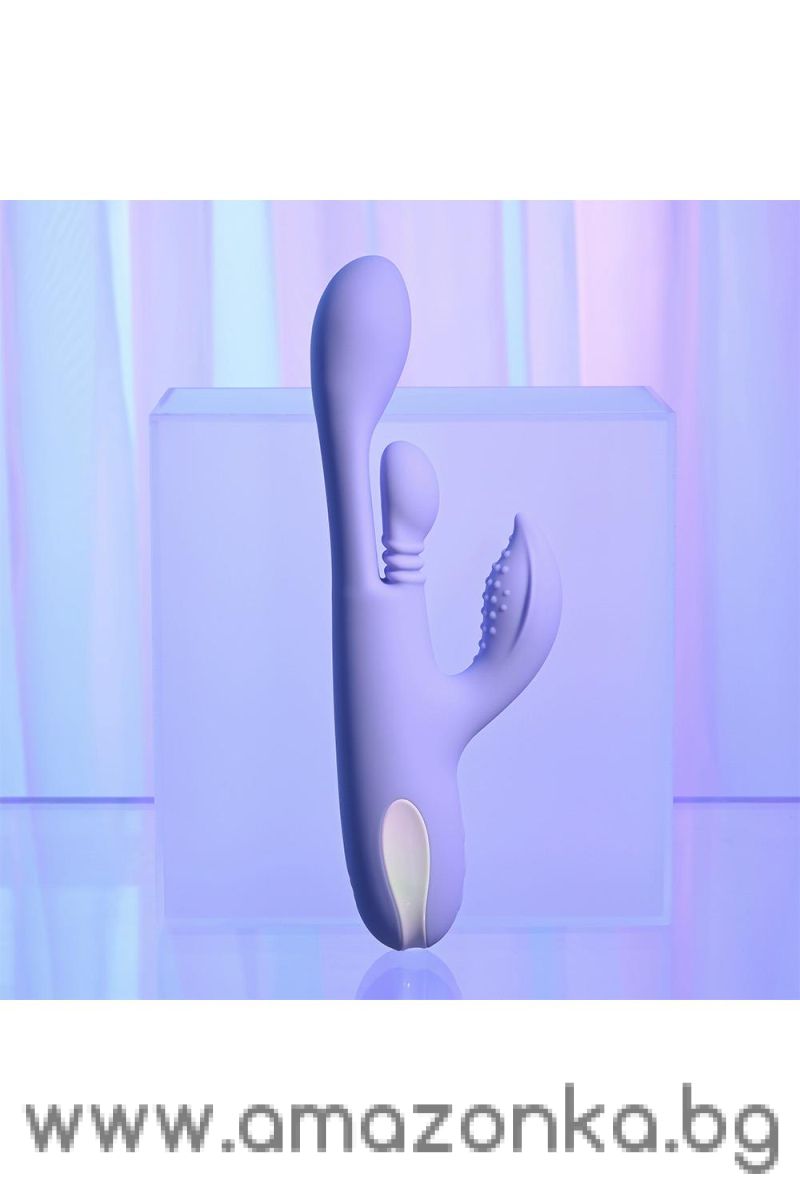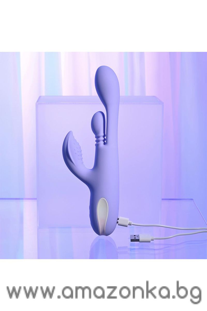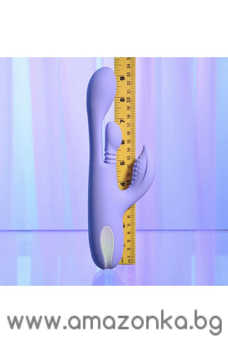 Двоен вибратор с тласкаща, кръгова издатина в основния вал Вибрация: 10 скорости и ритъма в 3 мотора (вибрация в главата на вала, издатината и стимулатора, кръгово/тласкаща издатина в издатината) Материал: Безопасен за тялото силикон и ABS без фталати и латекс Водоустойчив Магнитен Презареждащ се: USB кабел е включен Височина: 24,1 см Дълбочина: 7,9 см Ширина: 4,2 см Дължина на поставяне: 14,6 см Диаметър: 4,1 см