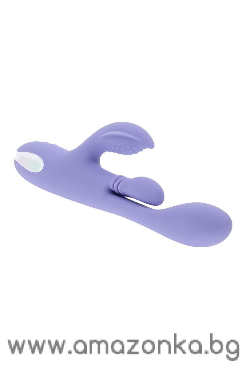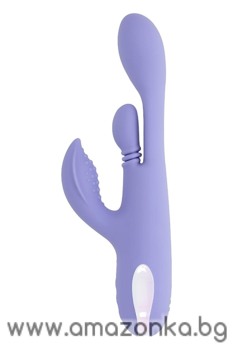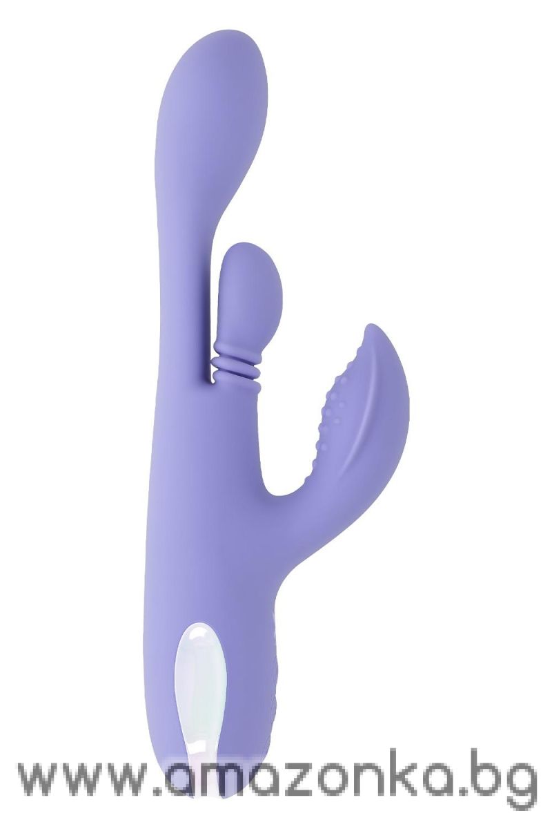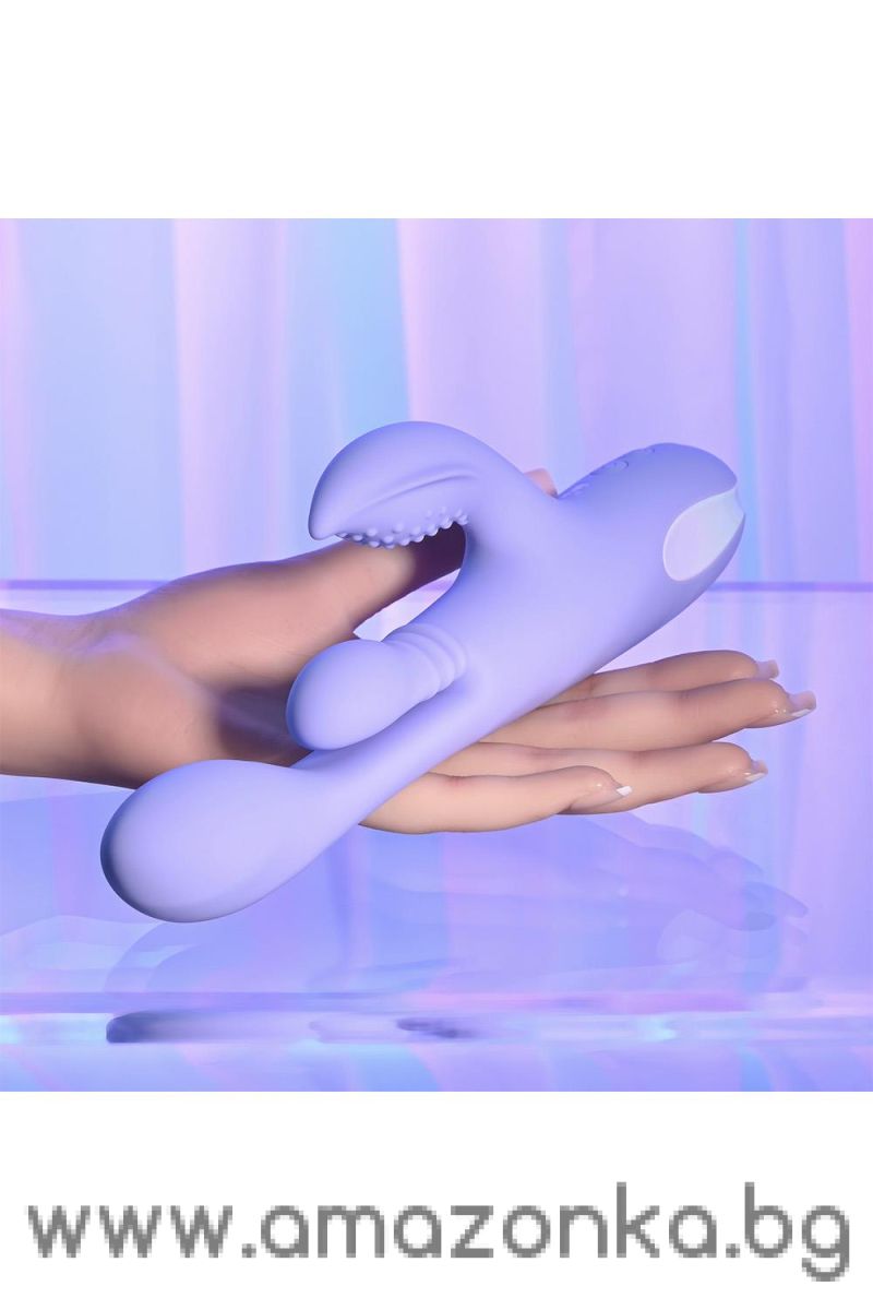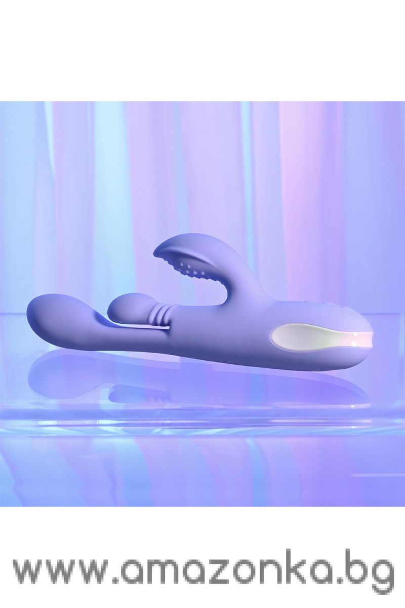 Двоен вибратор с тласкаща, кръгова издатина в основния вал Вибрация: 10 скорости и ритъма в 3 мотора (вибрация в главата на вала, издатината и стимулатора, кръгово/тласкаща издатина в издатината) Материал: Безопасен за тялото силикон и ABS без фталати и латекс Водоустойчив Магнитен Презареждащ се: USB кабел е включен Височина: 24,1 см Дълбочина: 7,9 см Ширина: 4,2 см Дължина на поставяне: 14,6 см Диаметър: 4,1 см