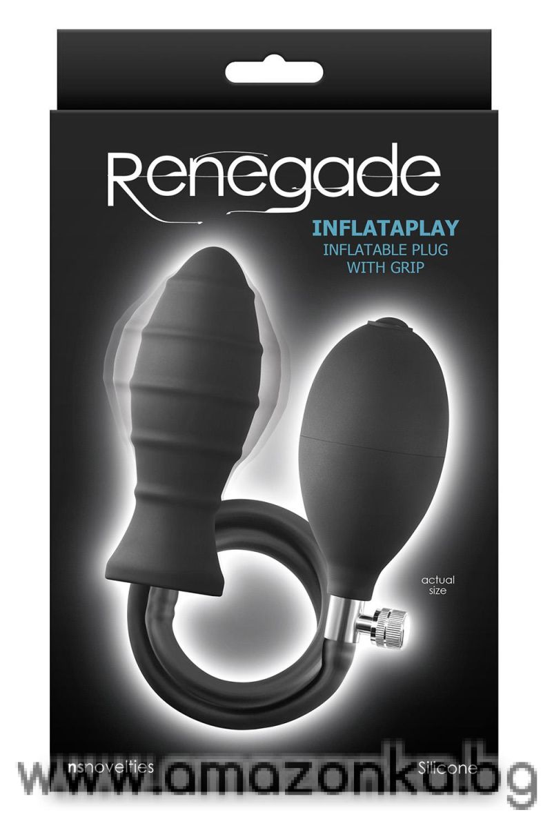 Напомпайте го с InflataPlay от Renegade. Надуваем анален щепсел с твърда вътрешна сърцевина за лесно поставяне. Изработен от безопасни за тялото материали, InflataPlay може да се надуе до желания размер и разполага с функция за бързо изпускане и бързо освобождаване. Водоустойчив. Подходящ с всички лубриканти.