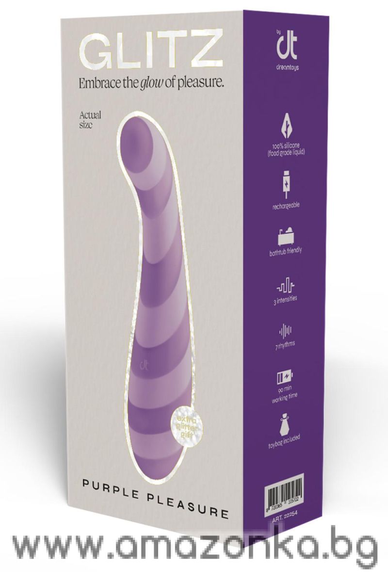 Колекцията Glitz въплъщава приключения, забавление и нотка магия. Създадена за модерното момиче, което желае да прегърне желанията си с увереност, Purple Pleasure не е просто играчка; това е празник на вашето пътуване, за да разкриете и изследвате собствените си нужди.