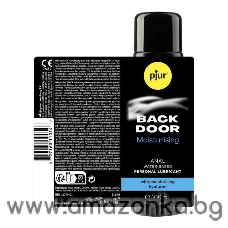 Насладете се на интензивен анален секс с максимален комфорт, благодарение на pjur BACK DOOR Moisturising. Този лубрикант на водна основа е специално разработен с висока концентрация на хиалуронова киселина, която осигурява изключителна хидратация и лубрикация, сравнима с усещането на силиконов лубрикант, но с всички предимства на водната основа.