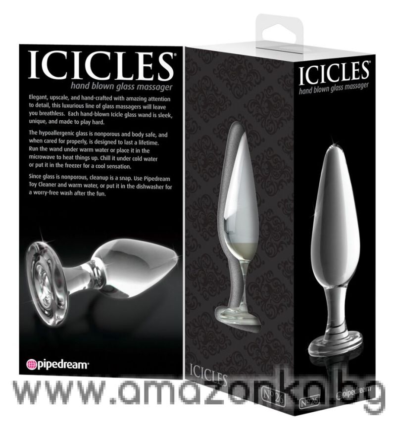 Тази ексклузивна, ръчно издухана стъклена тапа е идеална за масажи. Тапата може да се затопли или охлади във вода и прави възможни изключително вълнуващи моменти на удоволствие. Стъклото е напълно безшевно и се откроява със своите хипоалергенни характеристики.