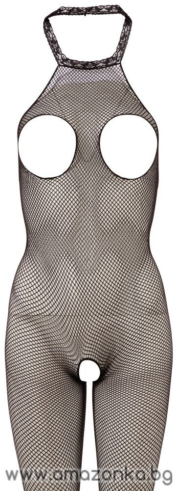 Мекият гащеризон без чатала от NO:XQSE е изработен от черна мрежа. Той е без гръб - еластична дантелена яка с гол гръб. С изрези за гърдите и в областта на чатала. Безшевна и еластична за изключително удобно прилягане.