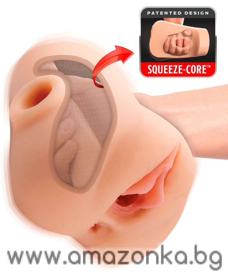 Мастурбаторът Pussy Pounder Vibrating Squeeze Stroker от PDX Plus е с дизайн вагина/анус и се отличава с изключително реалистични детайли и иновативна употреба. Патентованият Squeeze Core дизайн осигурява гъвкава вътрешна кухина, която се адаптира перфектно към ръката. Освен това разполага с два вътрешни канала за удоволствие, които могат да бъдат притискани и контролирани поотделно. Пълен контрол, изключително реалистично усещане и перфектен захват са възможни по време на ръчна стимулация!