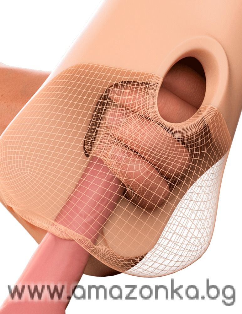 Мастурбаторът има реалистично оформена вулва и стегнат, реалистичен анус. Разтегливият вагинален канал разполага със стимулиращи точки, а разтегливият анален канал – с ясно изразени жлебове. Това означава, че целият пенис получава масаж. Благодарение на детайлния си дизайн и материала Fanta Flesh, наподобяващ кожа, мастурбаторът има изключително автентичен външен вид и усещане. Перфектен за максимално реалистично преживяване!