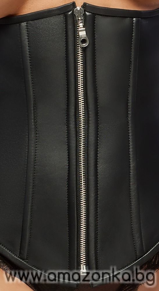 Съблазнителен корсет без чашки от мека агнешка кожа с халтер деколте, оформящи банели и регулируемо връзване. Перфектен за подчертани извивки, силно еротично излъчване и комфорт.
