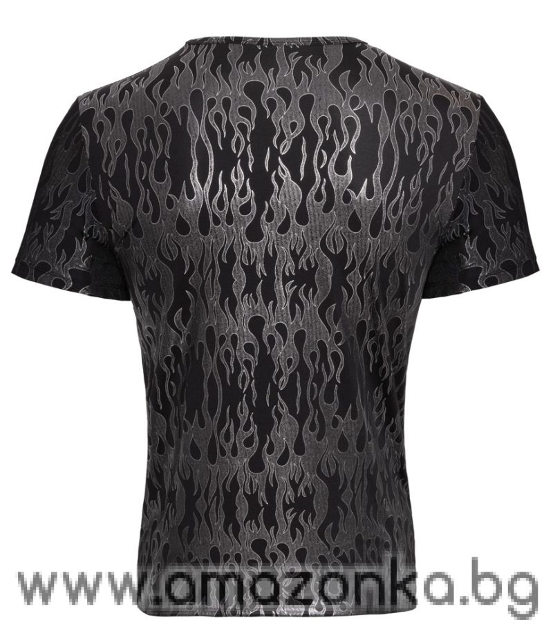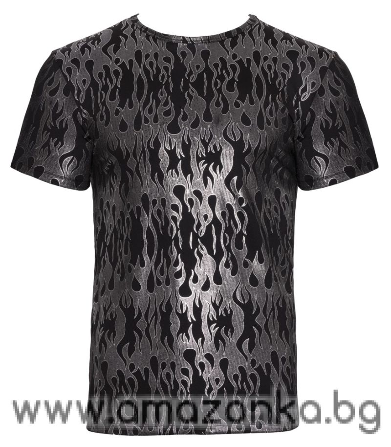 Стилна и елегантна тениска с къс ръкав и мистичен металик дизайн в черно и сребристо. Перфектна за подчертаване на фигурата и впечатляваща визия с отличен комфорт.