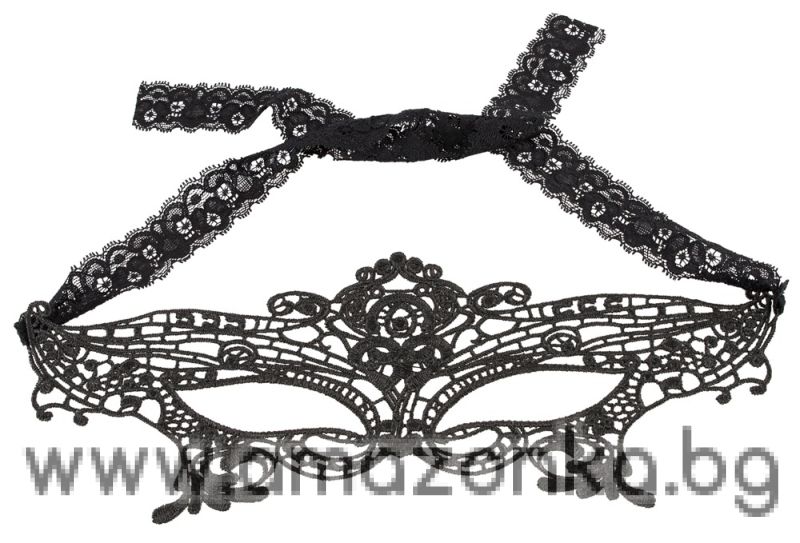 Елегантна черна дантелена маска с фина бродерия и регулируемо завързване – идеална за маскарад или съблазнителна визия.